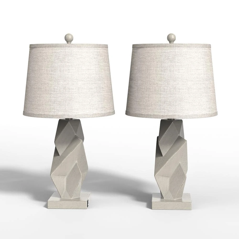 This geometric gray table lamp showcases a stunning geometric design, making it an excellent choice for any home space, whether in the living room or bedroom. The adjustable brightness feature requires compatible bulbs for use. The base includes USB and Type-C ports for charging your phone, tablet, Bluetooth headphones, and other electronic devices. This product is sold as a combo set.