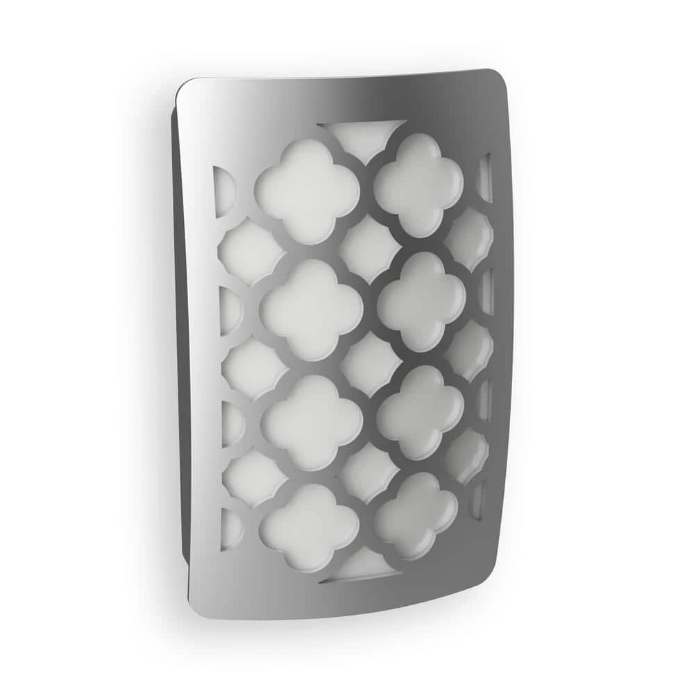 The Westek NL-DPTG-N Tangier Decoplug Night Light is the perfect night time lighting solution. This device automatically turns on in low light providing 4 lumens of illumination. Designed with a tangier pattern design and an satin nickel finish that works with any decor. The innovative cover hides outlet plugs from view and flips up when needed. Great for hallways, entryways, basements, bathrooms and more. AmerTac manufacturing brands offer complete lines of distinctive decorative home accent products that include trend-setting wall plates, money saving LED night lights, innovative under cabinet lighting and LED battery operated lights. We also offer utility product lines including energy-saving timers, dimmers and lighting controls, as well as an extensive offering of consumer electronics accessories for the home and office.