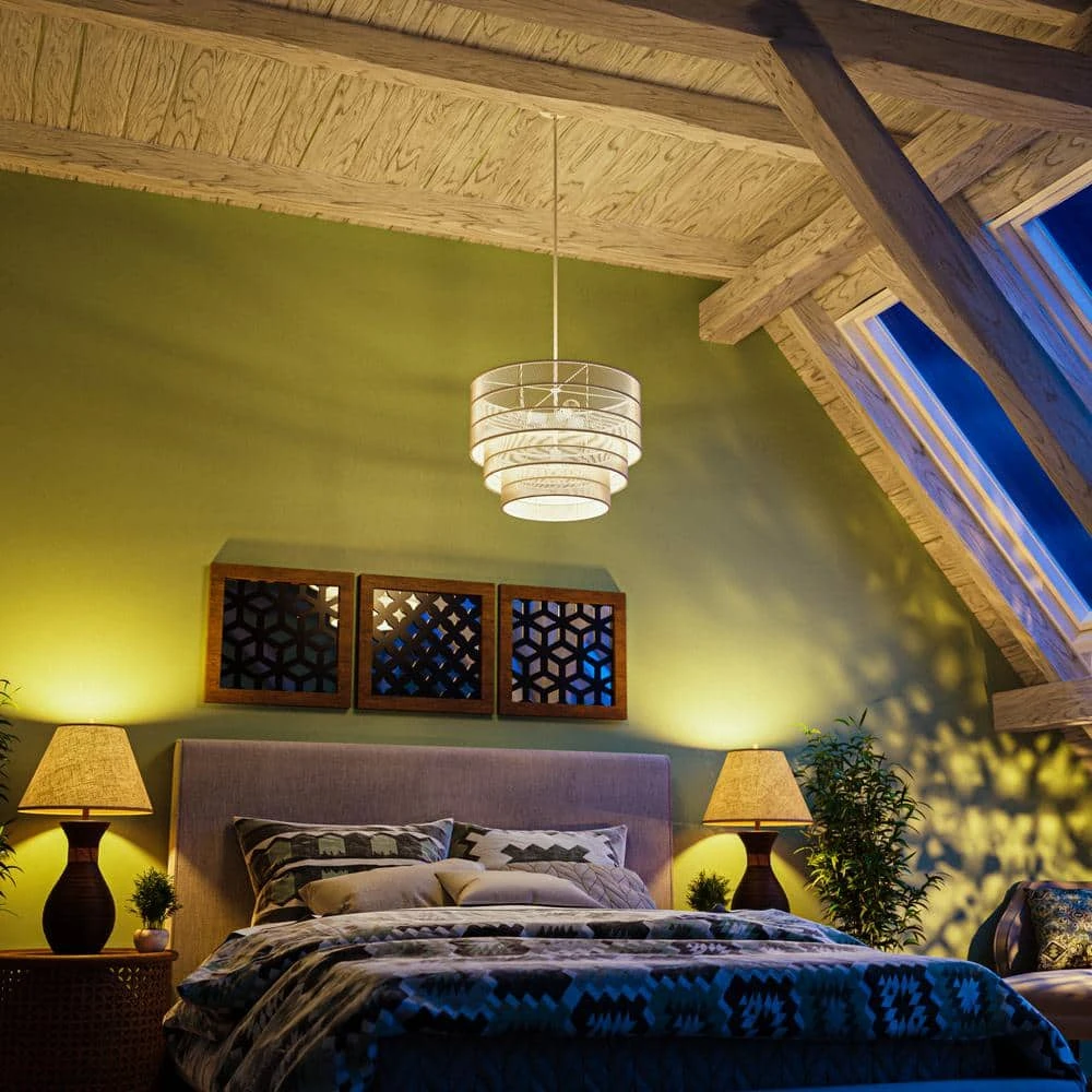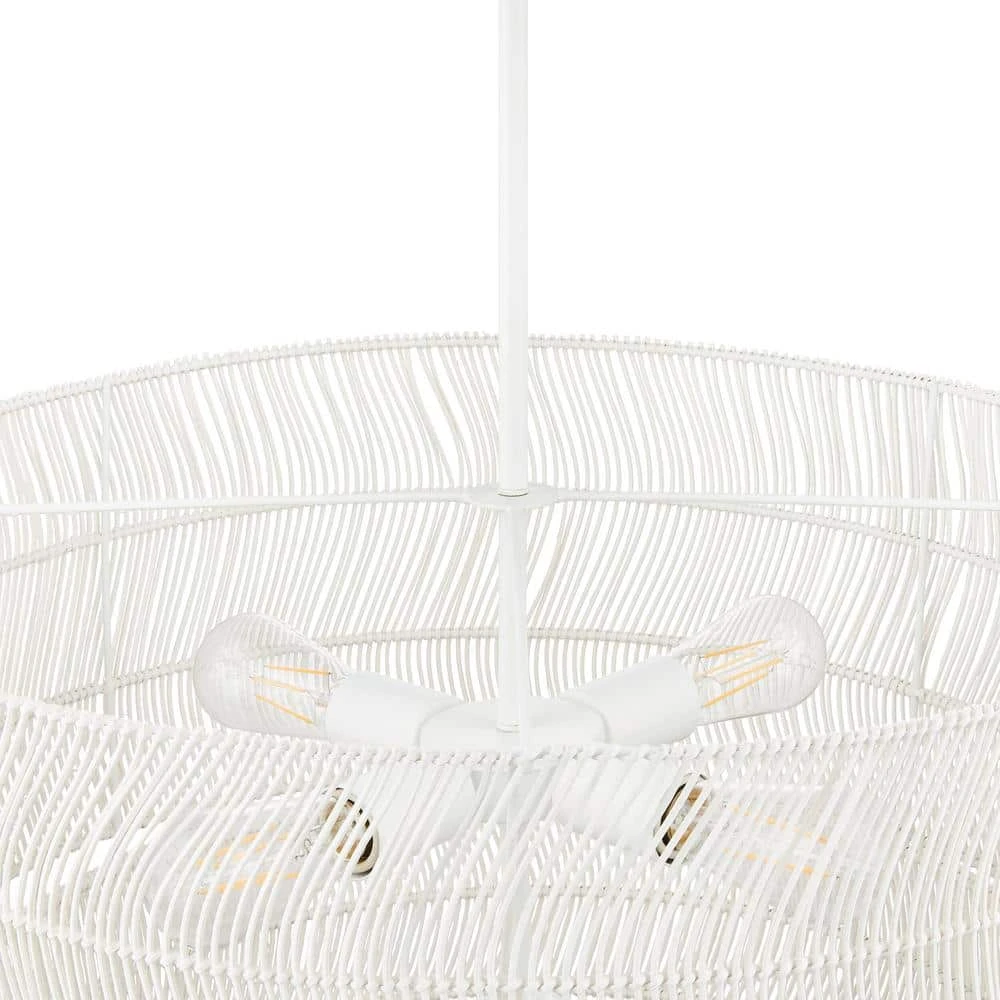 This white natural 5 light pendant is the perfect blend of boho style and functionality for your dining room lighting. The rattan design adds a rustic and natural touch, while the drum shade and rope accents give it a unique and trendy look. The 5 lights provide plenty of illumination, making it a great choice for any meal or gathering. Its neutral color allows it to blend seamlessly with a variety of decor styles, making it a versatile choice for any home.