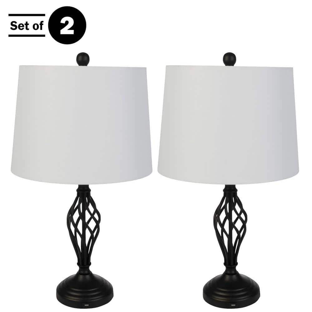 Add some extra lighting to your living room, bedroom, entryway, or office with the table lamps for living room set of 2-by Lavish Home. Each desk lamp comes equipped with an energy-efficient 9-Watt LED light bulb and features 3 different brightness modes (Note: a separate 3-way bulb must be purchased to use the different settings). Made of durable metal with USB charging ports, these lamps for living room feature a spiral cage design, ideal for placing separately on end tables, in different rooms, or as a matching pair on bedroom nightstands.