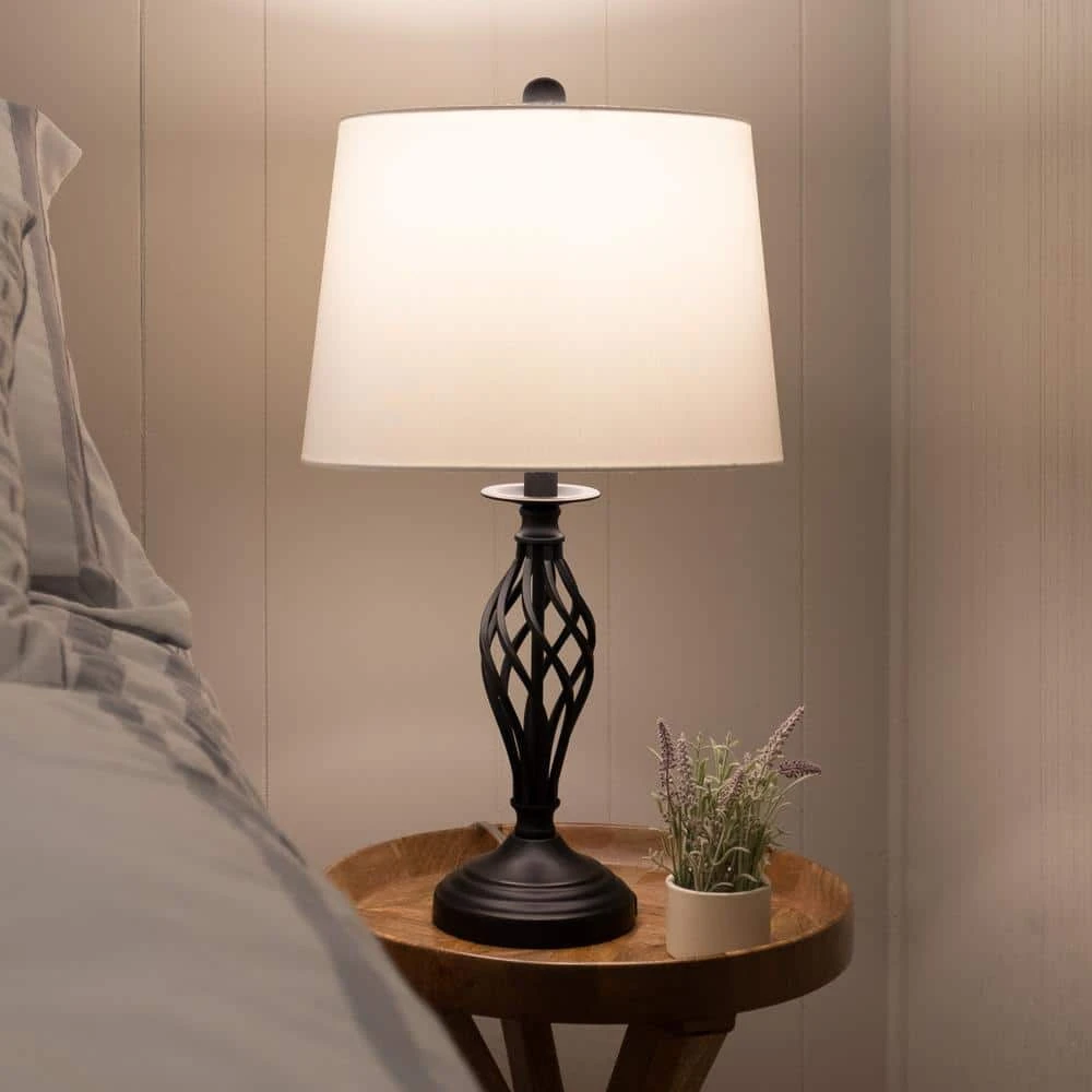 - Set of 2-bedroom lamps complements your home decor when placed separately in different rooms or as a matching pair on living room end tables or nightstands
