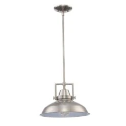 Wilhelm 12 In. 1-Light Brushed Nickel Industrial Farmhouse Pendant Light Fixture With Metal Shade