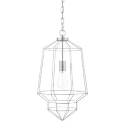 Winfield 1-Light Chrome Caged Pendant Light Fixture With Geometric Metal Shade