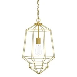 Winfield 1-Light Gold Caged Pendant Light Fixture With Geometric Metal Shade
