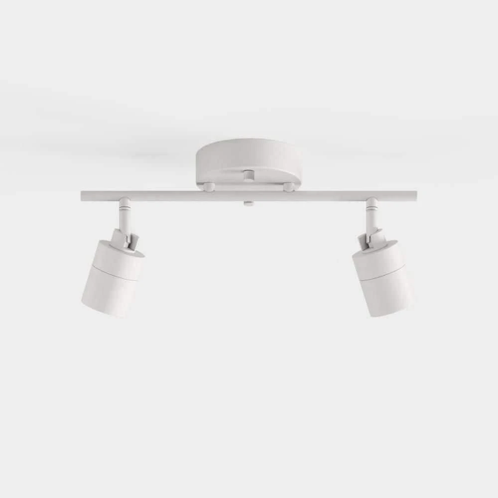 - Color & Features: This fixture has 2 spotlights attached to an aluminum track, finished in Matte White. Each spotlight can be individually adjusted 270° horizontally and 90° vertically.