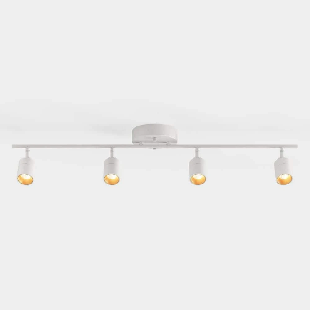 - Color & Features: This fixture has 4 spotlights attached to an aluminum track, finished in Matte White. Each spotlight can be individually adjusted 270° horizontally and 90° vertically.