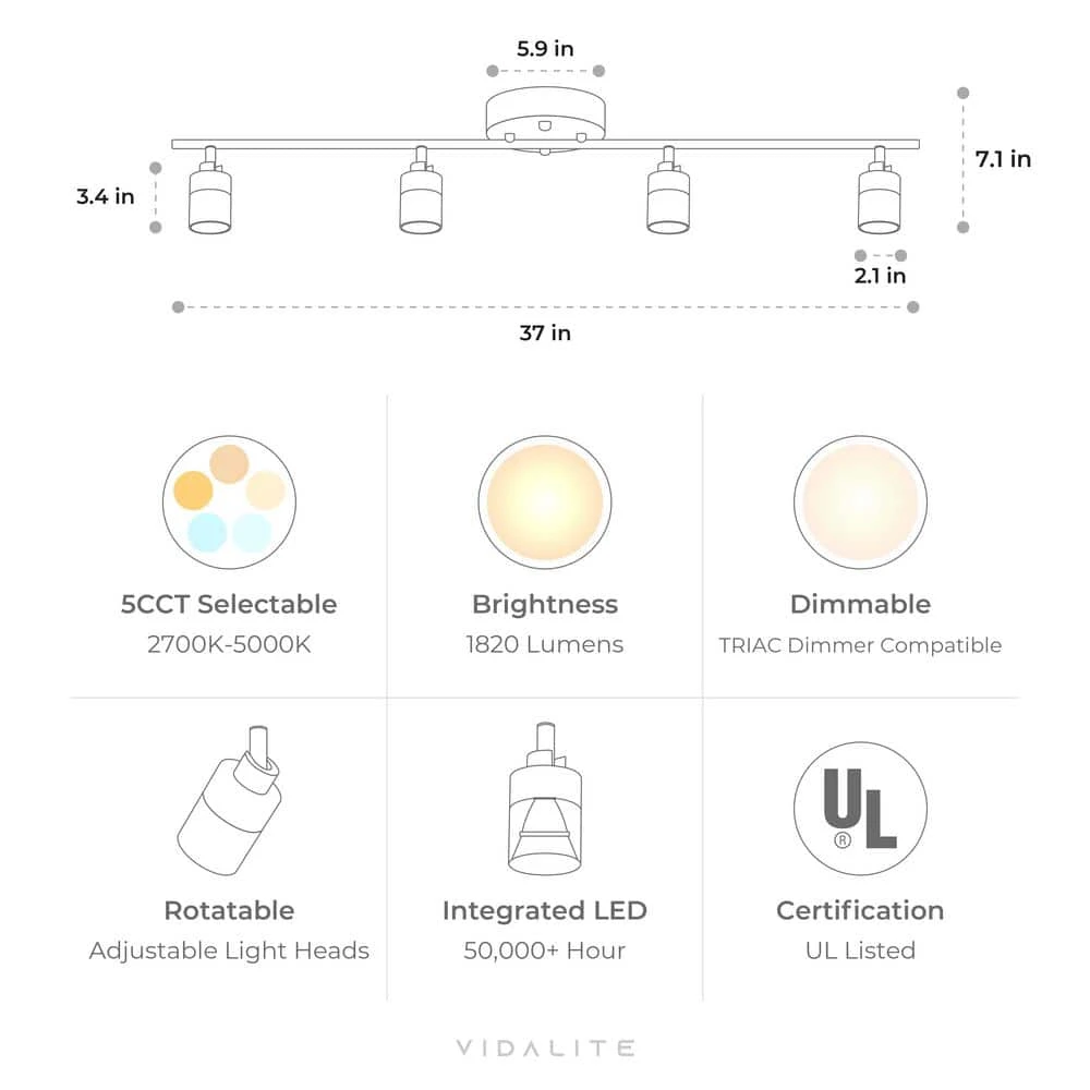 - Shura 4 head 5cct track light – matte black: shura is the most popular collection from Vidalite, including hardwired and plug-in installation options, as well as 5cct or single color temperature lighting setups, shura styles are available in a wide array of finishes, perfect for all tastes and preferences