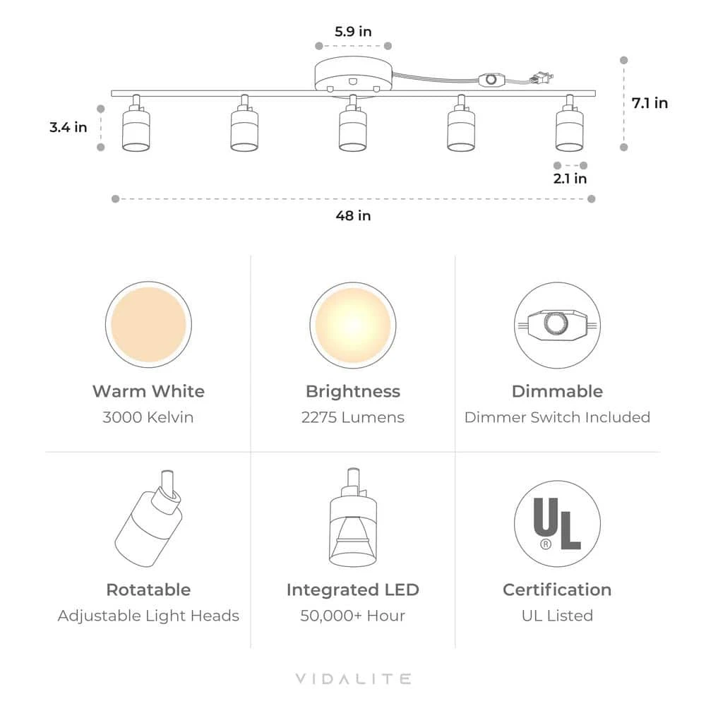 - Shura 5 Head Plug-In Track Light – Matte Black: Shura is the most popular collection from VidaLite, including hardwired and plug-in installation options, as well as 5CCT or single color temperature lighting setups. Shura styles are available in a wide array of finishes, perfect for all tastes and preferences.
