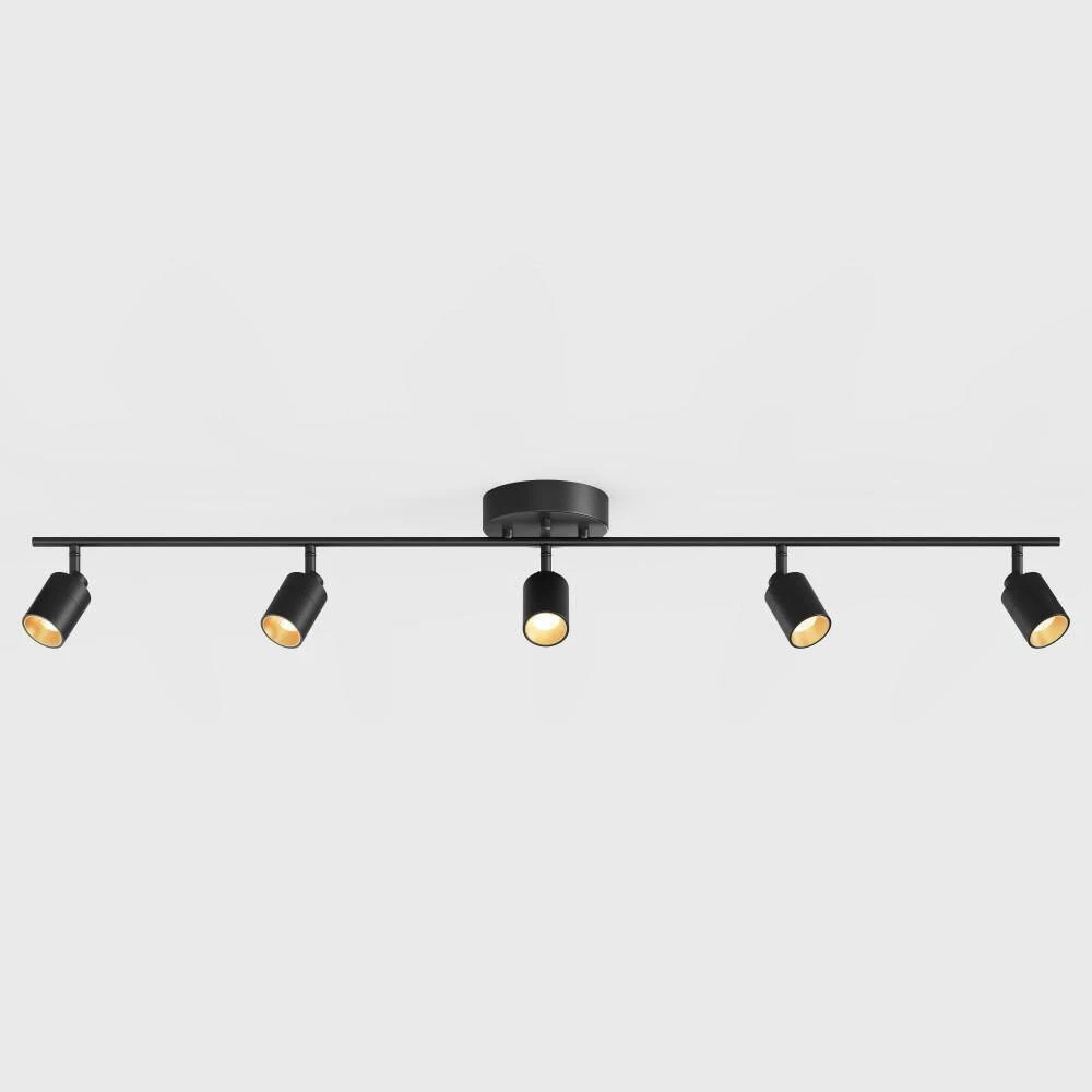 - Color and features: this fixture has 5 spotlights attached to an aluminum track, finished in matte black, each spotlight can be individually adjusted 270° horizontally and 90° vertically, with full range dimmability