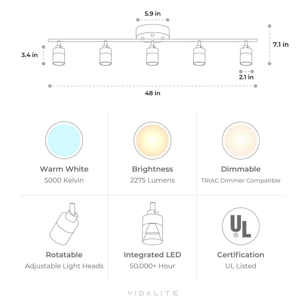 - Shura 5 Head Track Light – Matte Black: Shura is the most popular collection from VidaLite, including hardwired and plug-in installation options, as well as 5CCT or single color temperature lighting setups. Shura styles are available in a wide array of finishes, perfect for all tastes and preferences.