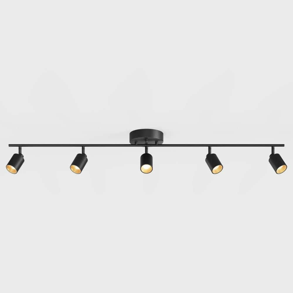 - Color & Features: This fixture has 5 spotlights attached to an aluminum track, finished in Matte Black. Each spotlight can be individually adjusted 270° horizontally and 90° vertically, with full range dimmability.