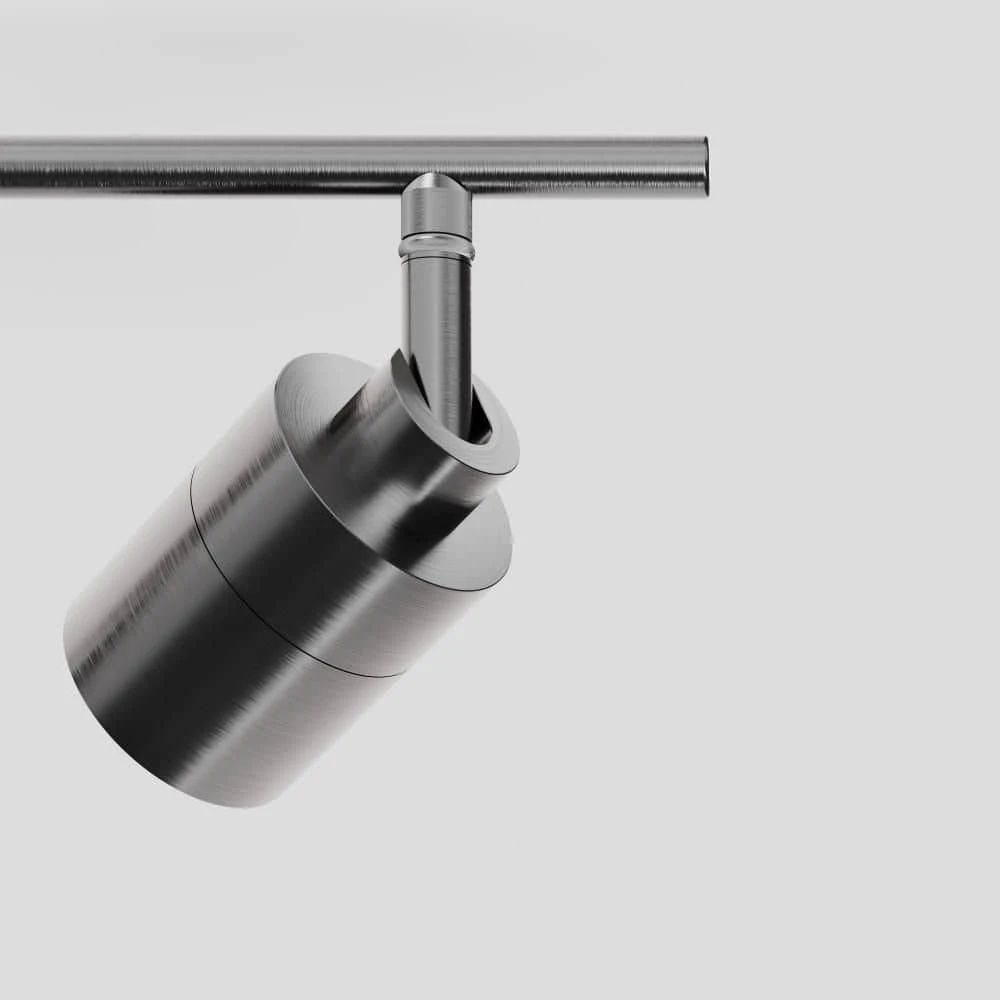 - Color & Features: This fixture has 4 spotlights attached to an aluminum track, finished in Brushed Nickel. Each spotlight can be individually adjusted 270° horizontally and 90° vertically, with full range dimmability.