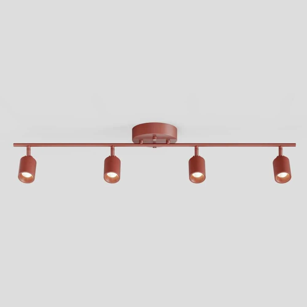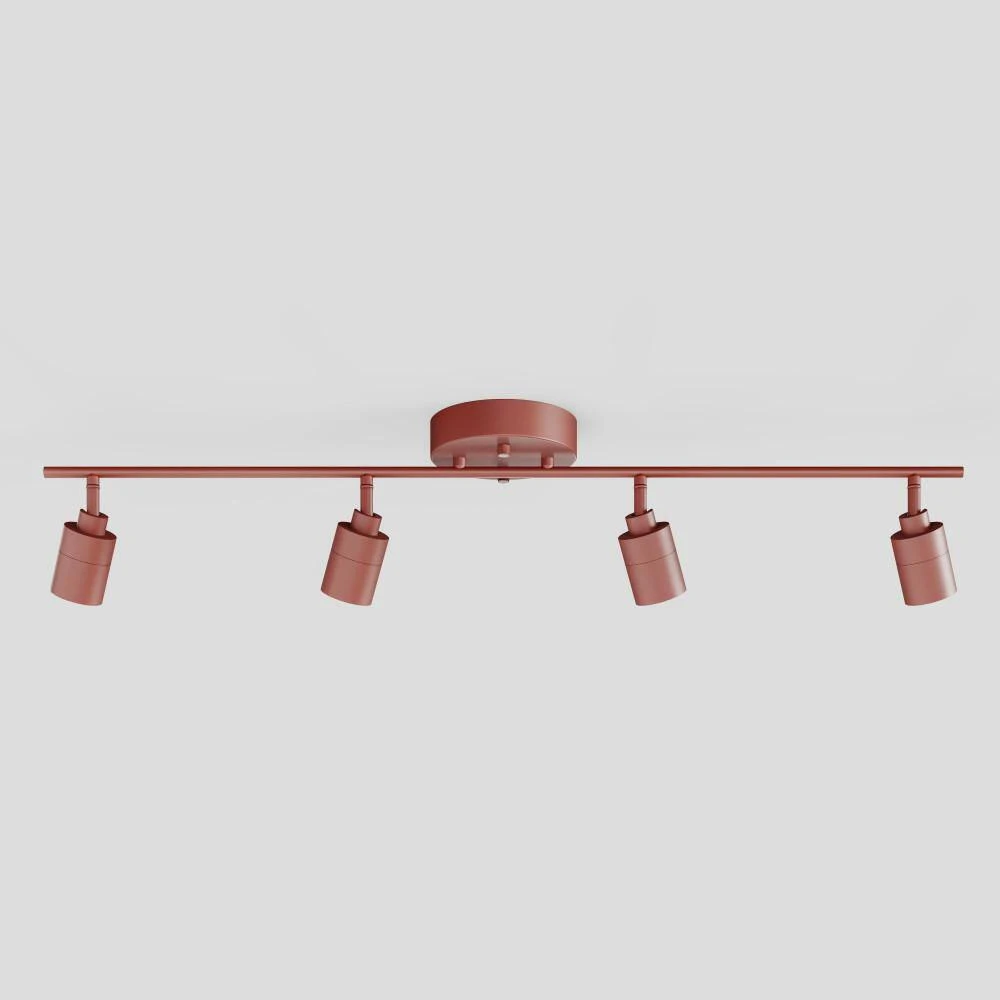 - Color & Features: This fixture has 4 spotlights attached to an aluminum track, finished in Matte Burnt Sienna. Each spotlight can be individually adjusted 270° horizontally and 90° vertically, with full range dimmability.