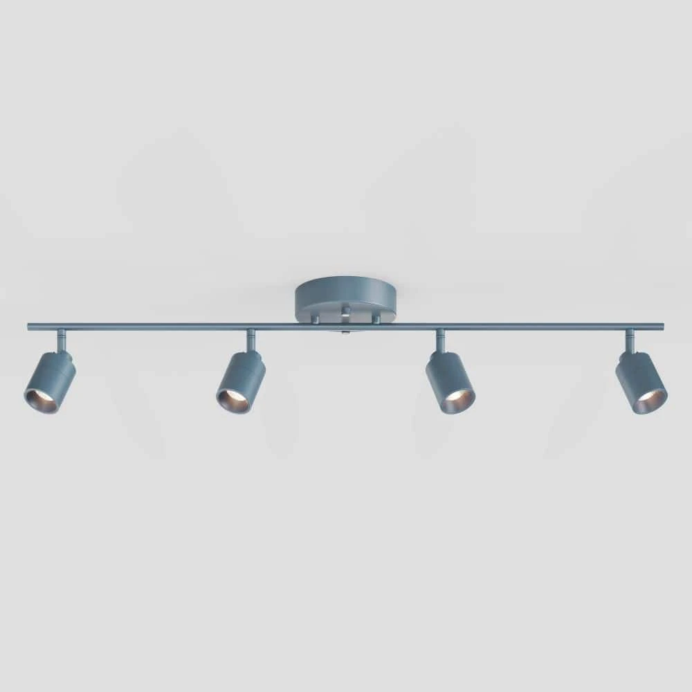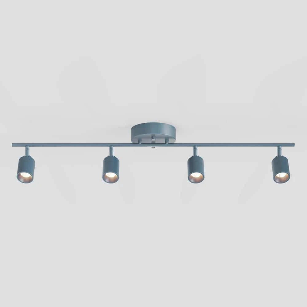 - Color & Features: This fixture has 4 spotlights attached to an aluminum track, finished in Matte Deep Navy. Each spotlight can be individually adjusted 270° horizontally and 90° vertically, with full range dimmability.