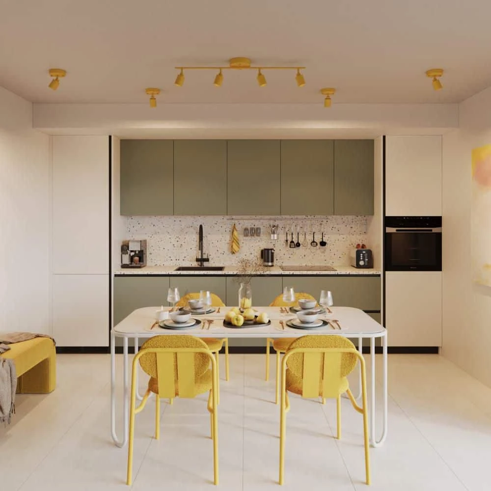- Color and features: this fixture has 4-spotlights attached to an aluminum track, finished in matte mustard yellow each spotlight can be individually adjusted 270° horizontally and 90° vertically, with full range dimmability