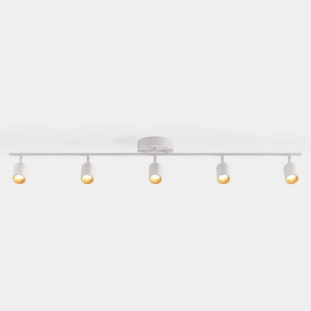 - Color and features: this fixture has 5 spotlights attached to an aluminum track, finished in matte white, each spotlight can be individually adjusted 270° horizontally and 90° vertically, with full range dimmability