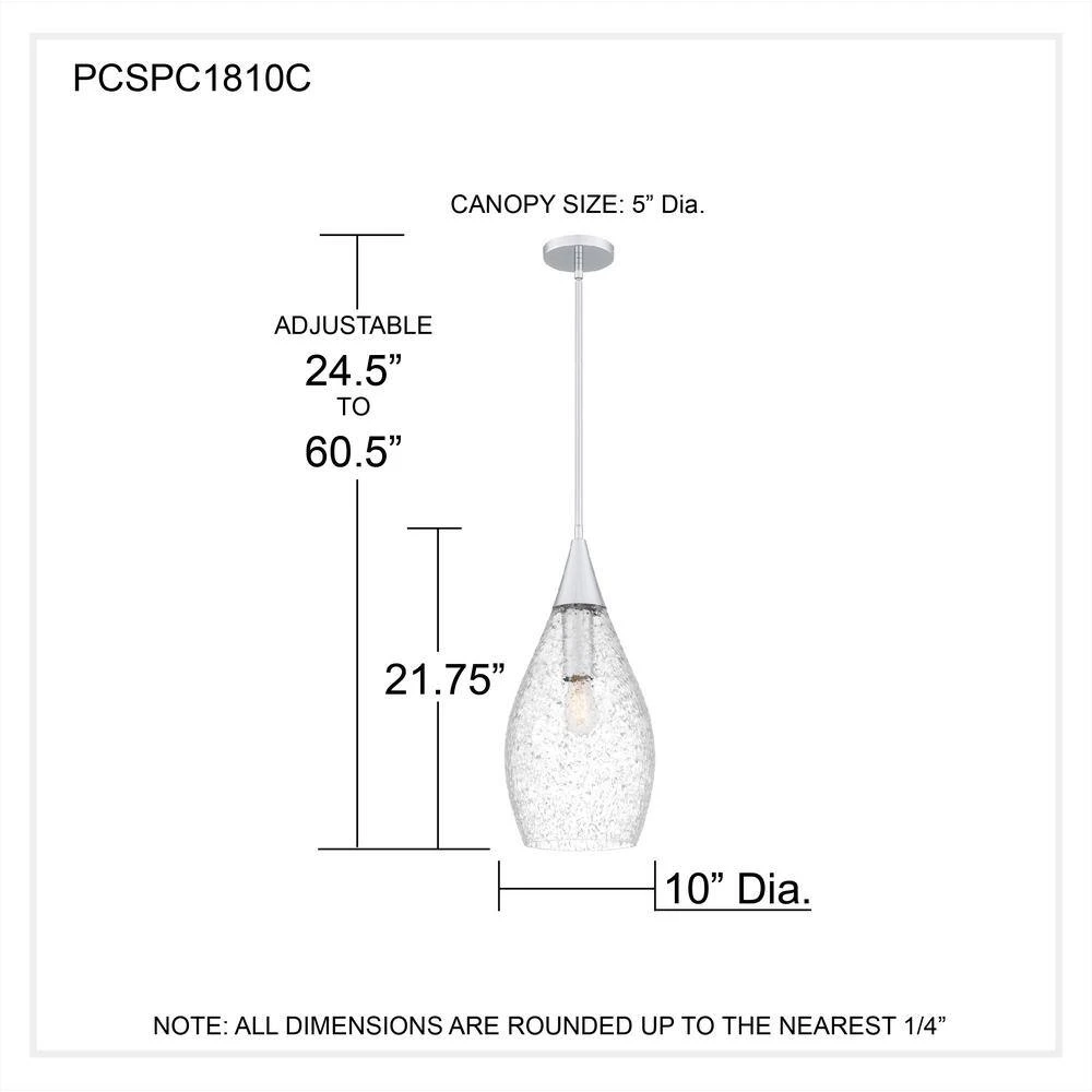 Polished chrome and a unique embedded glass shade make a classic yet glamorous pairing in Spruce pendant lights. Part of the popular Platinum by Quoizel collection, Spruce lends itself to a variety of modern or contemporary style settings. Hang Spruce pendants over any kitchen island or bar area for a touch of understated luxury.