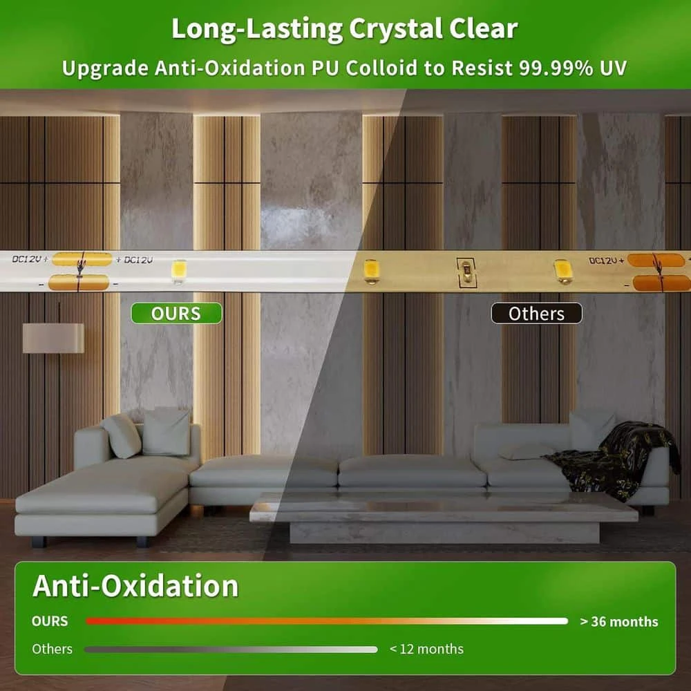 - LED strips are low-carbon and emit no radiation, flicker, or pollution, ensuring they are both eco-friendly and safe to use, made with high-quality flexible pcb and leds, they offer a stable, safe solution that’s good for both you and the environment