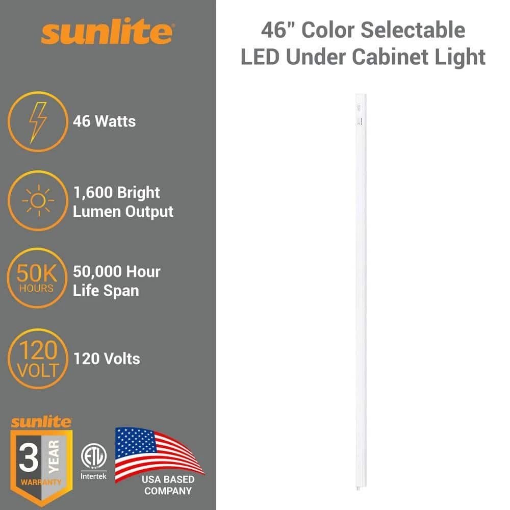 The Sunlite LED 46 in. Linkable Under Cabinet Light Fixture is the perfect way to add some modern touches to your home without having to hire an electrician. With the easy installation instructions, you can have a modern looking home within minutes. Since they are connectable, adding multiple fixtures can add more light to areas that do not receive it. With its high lumen output, long-lasting LEDs, and its adjustable color temperature options, the LED Linkable Under Cabinet Light Fixture makes for a perfect task and coverage light in any area.