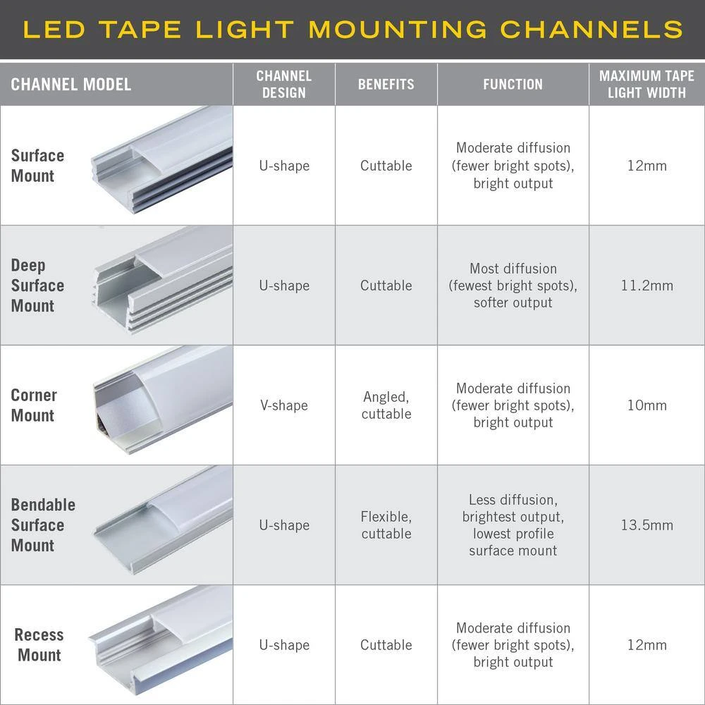 - Channels are an attractive way to complete a professional LED tape light strip installation