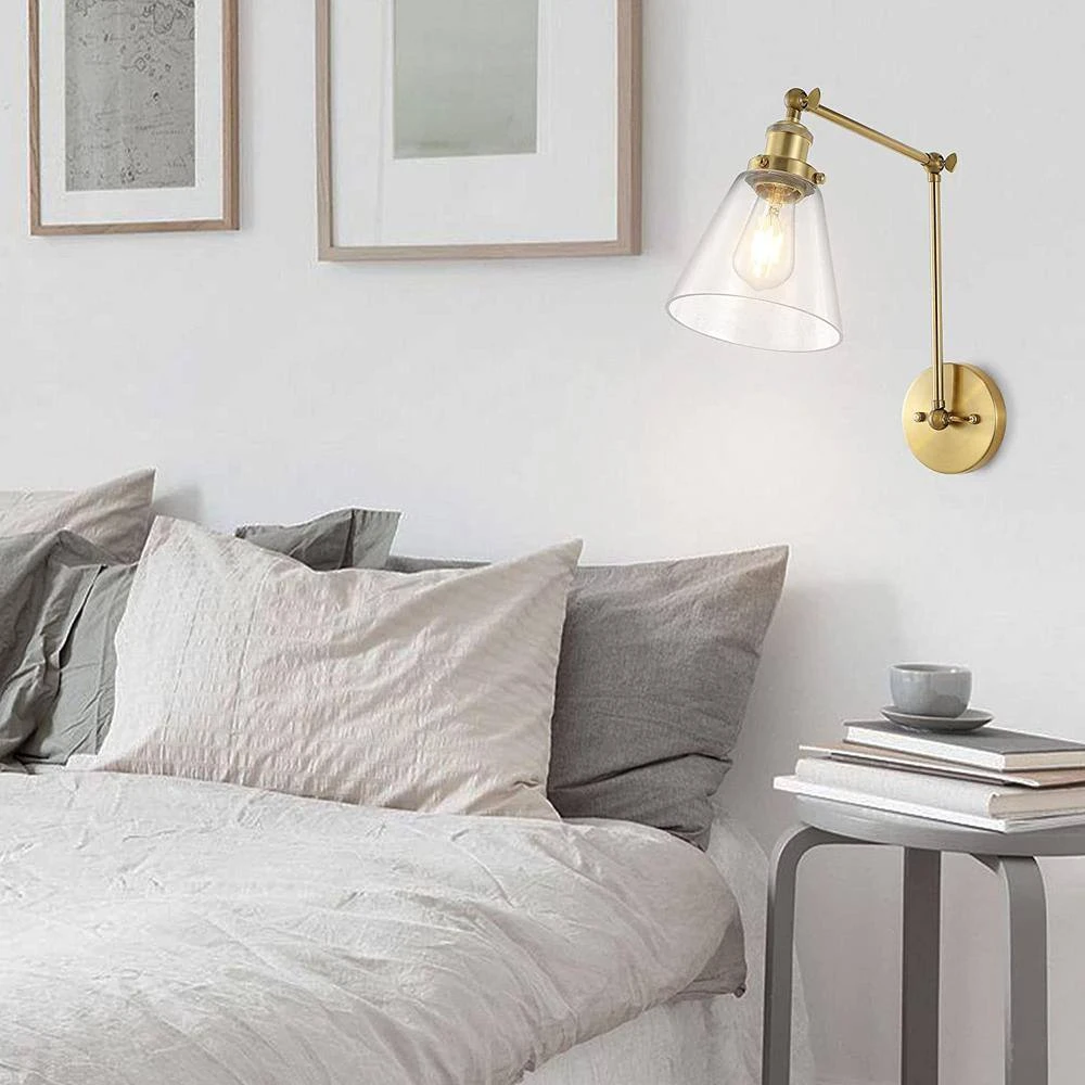 Swing Arm Adjustable Wall Lamps Set Of 2 Brass Hardwired Light Fixture Up Down Glass Shade