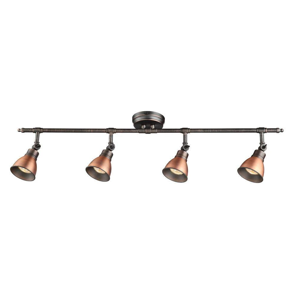 Add style to any room with this 4-Light Templeton Collection track Fixture. Adjustable track heads allow you to direct light where needed. 2 Tone Copper and Bronze finish adds a touch of elegance tee your space. Includes 4×50-Watt GU10 Halogen bulbs.
