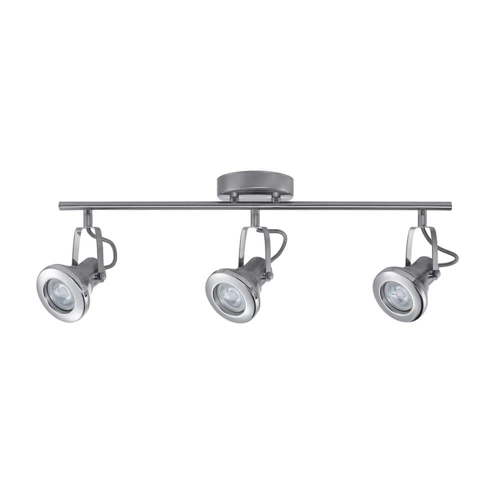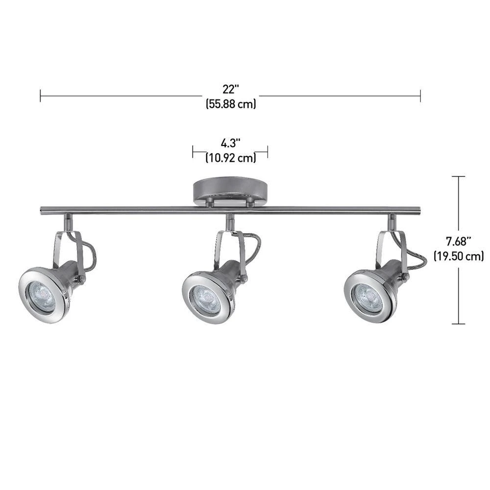 Track lighting has come so far since the 80s and we are super excited to share our Theodore 3-Light Track Light with you. The brushed nickel finish pairs perfectly with chrome accents to take an otherwise classic design and bring it into the modern era. The shape of the shades mixed with the finish is a perfect accent to any room in your home. Fully dimmable with a compatible dimmer switch to create the perfect ambiance for any given situation (dimmer switch not included). We have included LED bulbs to save you time and money by using less energy and reducing the need for frequent bulb replacement. Includes all mounting hardware for quick and easy installation and three 7W GU10 LED bulbs.