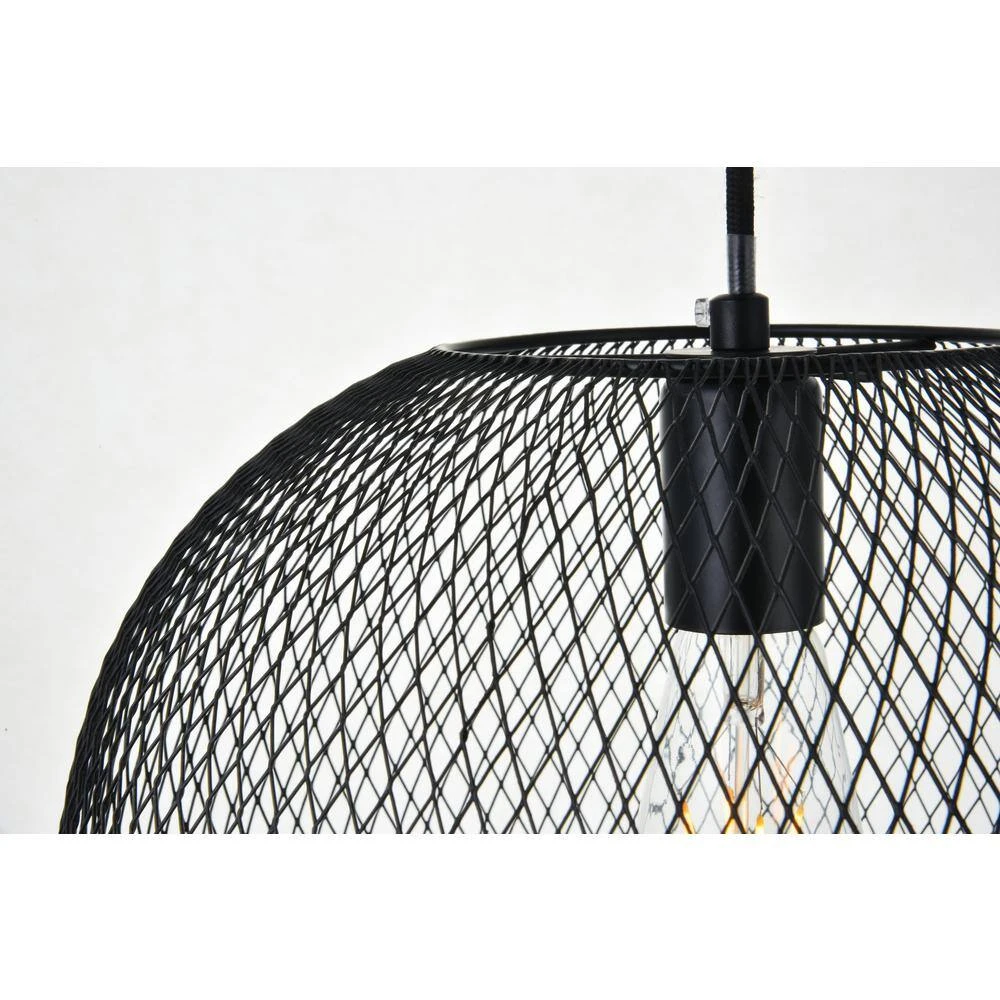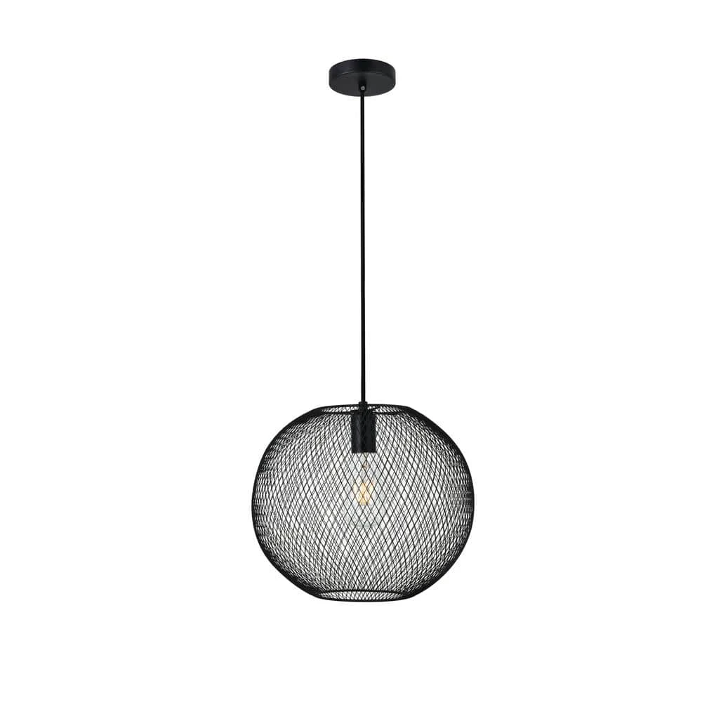 The sophisticated Kedgarr hanging pendant lamp offers a contemporary design and will enlighten your home’s entryway, kitchen, bedroom, den or rec room. Its distinctive shade, composed of black metal, features a matrix design with the woven appearance of netting. When lit, the lamp radiates vivid shadows throughout the room. The fixture accepts a filament-style incandescent or LED blurb and is supported with a disk-shaped canopy.