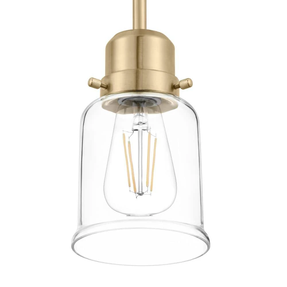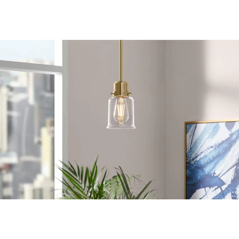 This 1-light mini-pendant light gives any living space a modern, luxurious touch. Minimalist and extremely on-trend, its clean upscale design features a brass finish accented by unique socket cups and clear globe shades. Whether your decor is modern, farmhouse or even industrial it will blend seamlessly in any room. A unique design with timeless appeal.