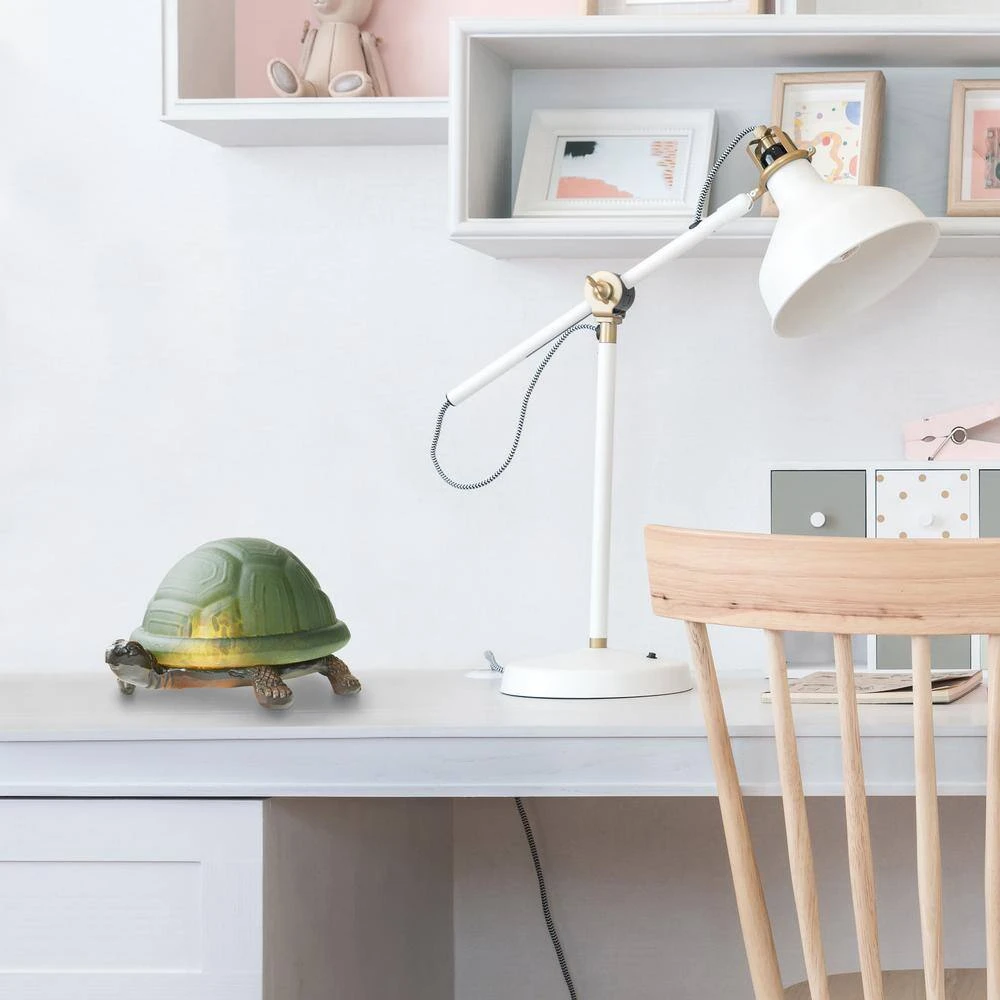 - Novelty accent lamp with turtle body base and turtle shell-shaped shade