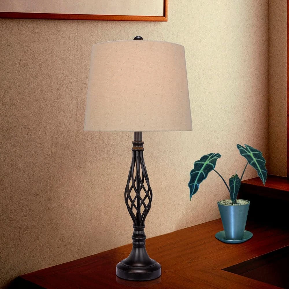 GET 2 LAMPS FOR THE PRICE OF 1! Fangio Lighting’s #1462BLK 27 inch Metal Table Lamp set will become an instant favorite with its sleek Black finish. Whether you are looking to infuse a splash of color into your room palette or desire lamps that speak for themselves, you are sure to be pleased with these lights! Fangio loves to add a touch of subtle flare where it can and this set is no exception. The loose candlestick form, with its intriguing airy spiral design, will complement your decor brilliantly. Perfect for slender tables or anywhere you need light without loosing an impression of open space. With these lamps you don’t have to sacrifice style for function, as they come complete with designer Oatmeal Linen shades and easy to use On/Off switches. No matter if you lean towards decorating with a Traditional, European or Modern feel, this set will showcase your exceptional tastes! The items are UL listed and CSA approved and each takes one 100W bulb (not included.) Simply add 1 Unit to your Shopping Cart and 2 identical lamps will automatically ship out to you in 1 box! Can’t beat this deal!