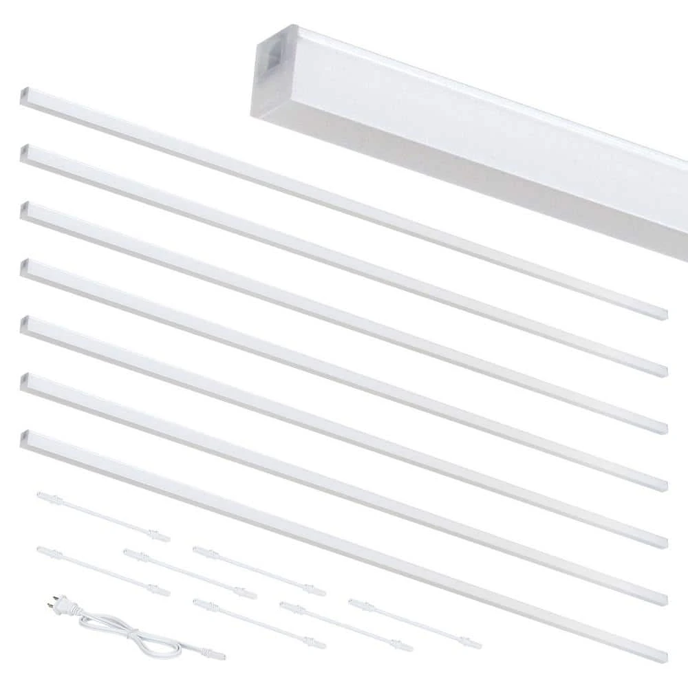 5000K Bright White LED Strip strip kit. Use this 8-pack of linkable LED light strips for lighting up merchandise on gondola shelving. Each light emits 840 Lumens. The lights are magnetic or can be put in place using double sided adhesive. Up to 10 lights can be daisy chained together. No driver / power supply / transformer required. Includes 1 power cable and 7 connecting cables.