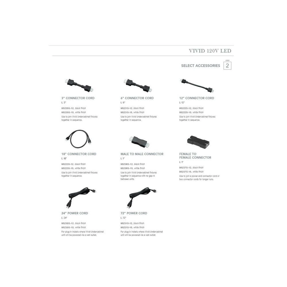 The Sea Gull Lighting 6 in. connector cord is designed to join Vivid Undercabinet fixtures together in sequence. This is the connector cord only; the light fixture and accessories are sold separately. Refer to compatibility chart to determine light fixture and accessories necessary for your application.
