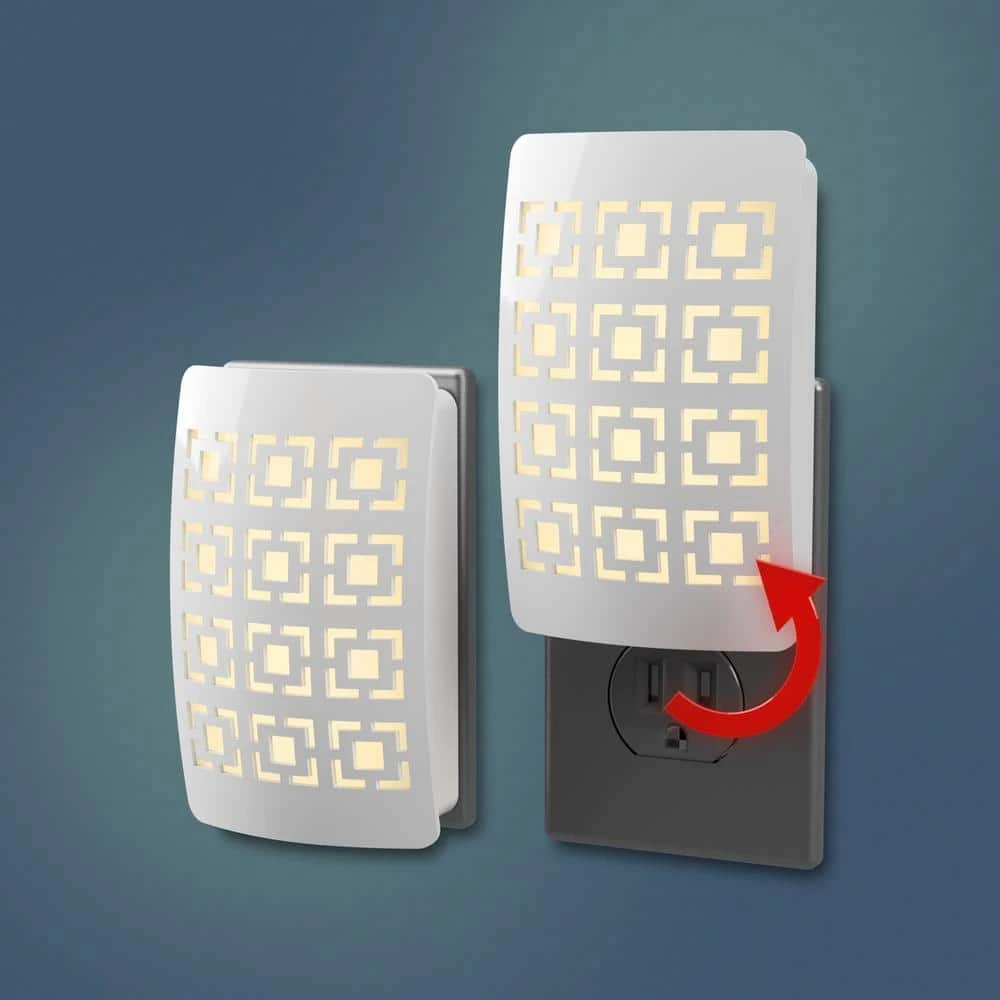 The Westek NL-DPGS-W Geosquare Decoplug Night Light is the perfect night time lighting solution. This device automatically turns on in low light providing 2 lumens of illumination. Designed with a geometric pattern design and an white finish that works with any decor. The innovative cover hides outlet plugs from view and flips up when needed. Great for hallways, entryways, basements, bathrooms and more. AmerTac manufacturing brands offer complete lines of distinctive decorative home accent products that include trend-setting wall plates, money saving LED night lights, innovative under cabinet lighting and LED battery operated lights. We also offer utility product lines including energy-saving timers, dimmers and lighting controls, as well as an extensive offering of consumer electronics accessories for the home and office.