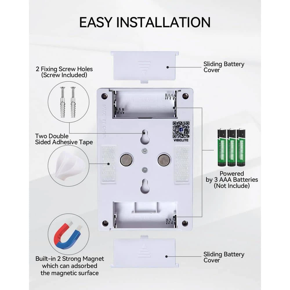 - Easy to install. Comes with a 3M adhesive metal plate and magnetic base, allowing attachment to any flat surface horizontally or vertically. Can be easily detached and reused elsewhere.