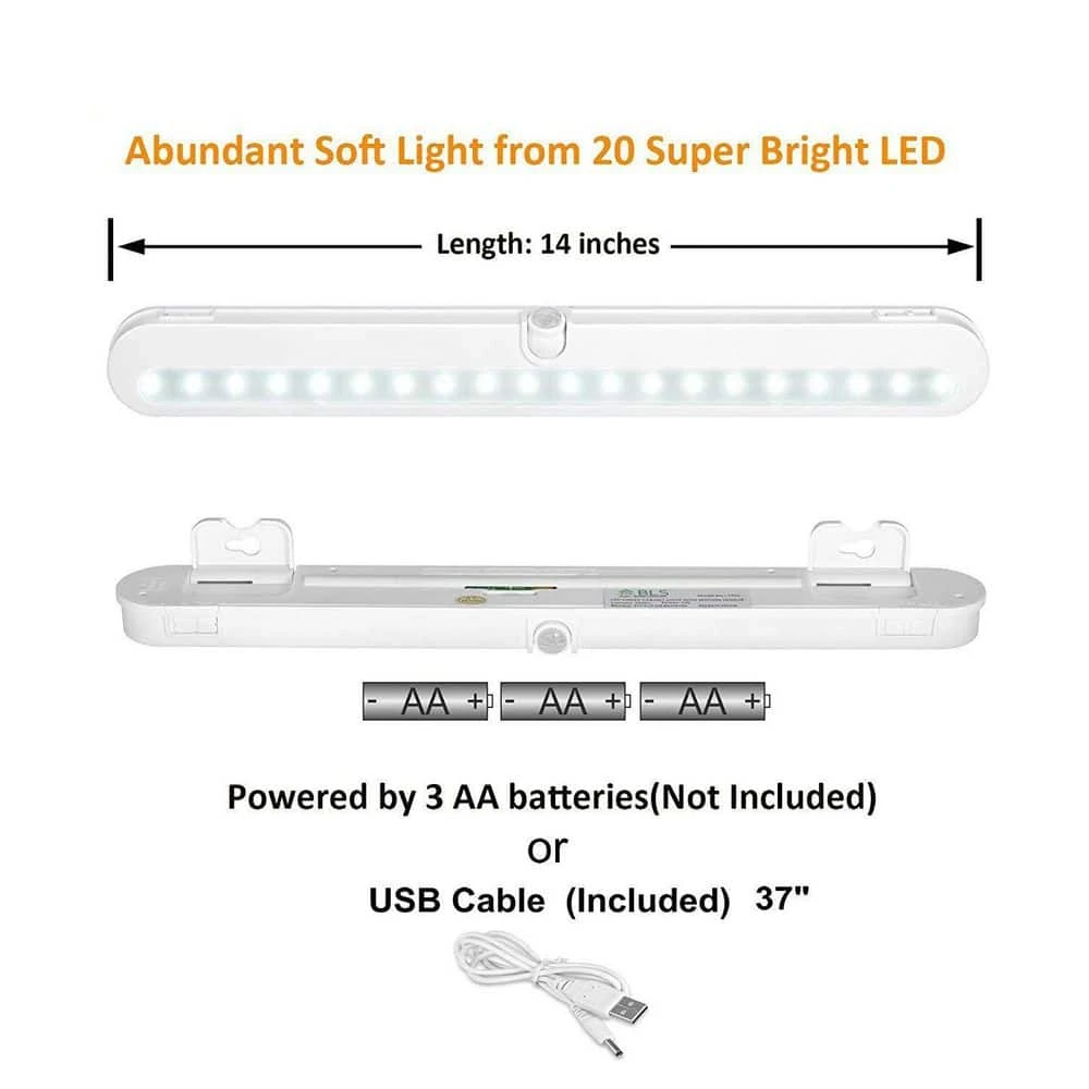 Upgrade your living spaces with this LED closet light. It features a 14 – inch panel with 20 super – bright LEDs that give out 180 Lumens of soft white light. The motion sensor turns the light on when you’re within 10 feet and keeps it on for 20 seconds after you leave in Auto mode. You can choose from Auto/On/Off 3 modes and decide whether it works at night only or all day. What’s more, it can be powered by a 5V USB DC Plug, eliminating the need for wiring. Its light beam and motion – sensor sensitivity are adjustable, and it can be mounted horizontally or vertically. Installation is a breeze with provided screws or 3M sticker. Measuring 2.6 x 14.7 x 1.1 inches, it’s suitable for kitchens, bedrooms, closets, cabinets, and many other areas, bringing great convenience to your daily life.