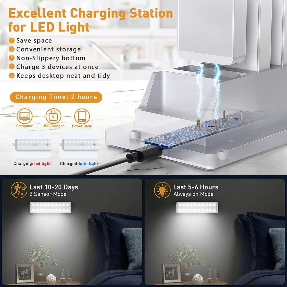 - Storable multi – device charging station. It can charge three lights at once when connected to a USB cable. You can also charge each light individually. It helps keep your desktop neat and has a non – slippery bottom to prevent sliding.