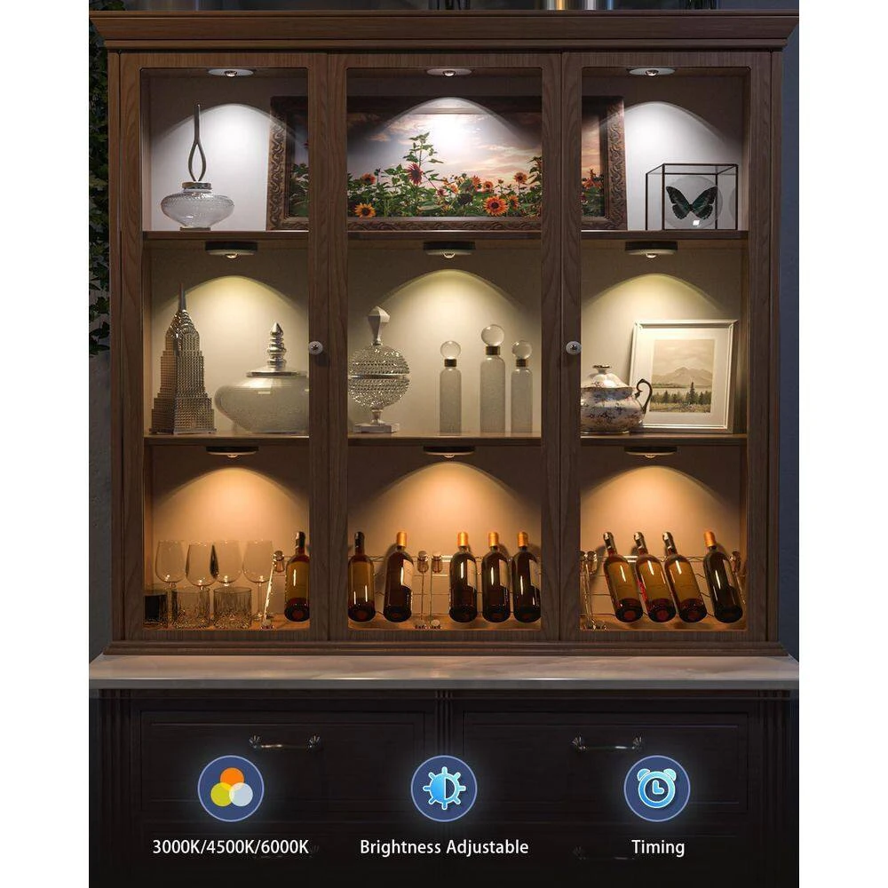 Enhance your living space with these rechargeable puck lights. Measuring 2.4 x 2.4 x 0.79 inches, they come in a pack of 6. These lights are USB rechargeable, which is energy – saving and eco – friendly. You can charge 3 lights at the same time using a 3 – in – 1 USB cable, and they can last 12 hours on maximum brightness. There are two control methods: touch and remote. The remote also has a timing function. They offer three color temperatures (3000K, 4500K, 6000K) and five – level brightness adjustment. Installation is a breeze, either by magnet or sticker. They are portable and suitable for various places like closets, cabinets, bedrooms and kitchens, bringing convenience and a great lighting experience to your life.