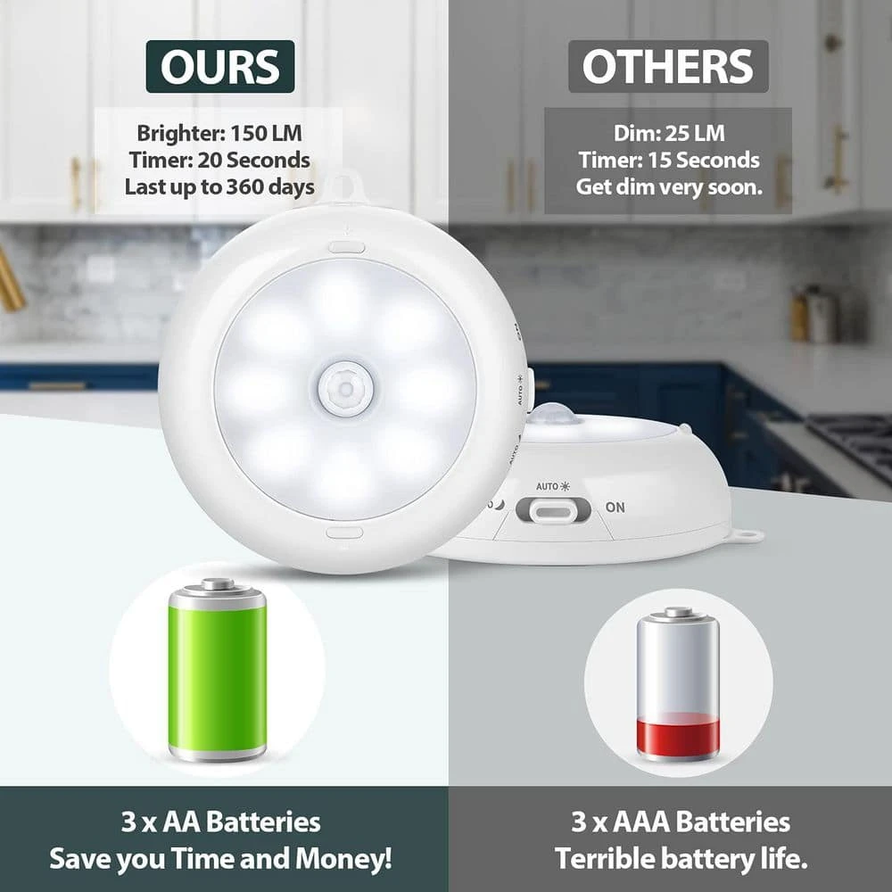 Discover these motion – sensor LED indoor lights! They’re perfect for closets, under cabinets, stairs, and more. With a size of 3.35 x 3.35 x 1.04 inches, they’re compact yet powerful. These lights are super bright, reaching up to 150 Lumens with 6000K clean white light, 5 times brighter than similar products. You can easily dim them by pressing the +/- summary. There are 3 modes: Continuous ON, AUTO NIGHT, and AUTO DAY & NIGHT. The motion sensor is highly reliable, thanks to Constant – Sense technology. It detects your movements and stays on as long as you’re nearby, then turns off 20 seconds after you leave. They can be installed cordlessly in areas without electricity. You can stick them to any surface using top – quality 3M adhesives without damaging your furniture or walls, or mount them with screws or hang them using the unique hole. This 3 – pack is a great addition to your home, providing convenience in various indoor spaces.