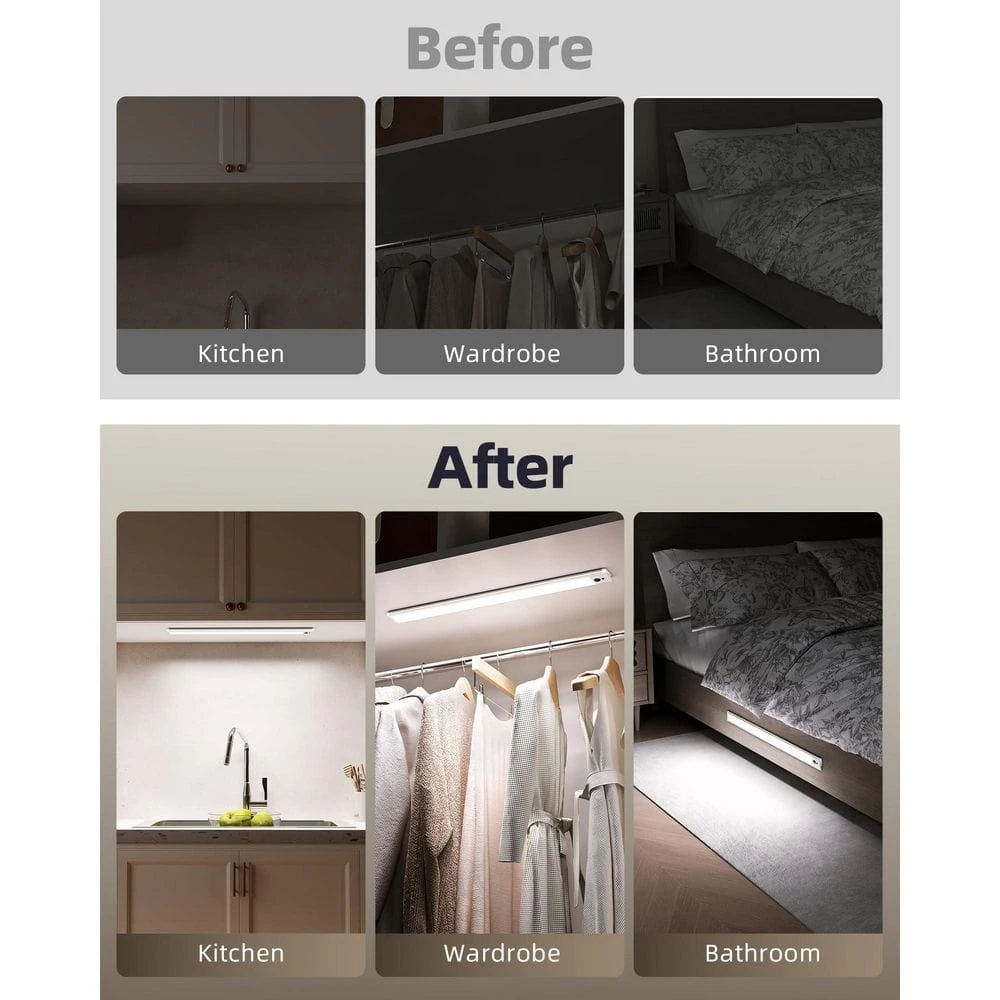 Discover this 14.5 – inch motion – sensor light, perfect for under – cabinet use. It’s super bright with a 5700K color temperature. The light is USB rechargeable and energy – saving. With a smart motion sensor, it activates within a 10 – ft / 120° range and has two auto modes: Day and Night. Control it easily with the remote, which offers dimming and timer functions. Installation is a breeze, thanks to the built – in magnet or the provided iron sheet with 3M adhesive. Made of high – quality anodized aluminum, it’s suitable for closets, bedrooms, and other indoor areas. This light brings great convenience to your daily life, whether you’re at home or in a commercial setting.