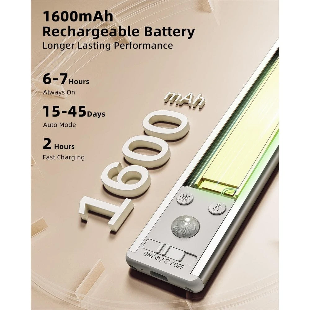 - Fast – charging design. It can be fully charged in just 2 hours, much faster than other similar products. Enjoy up to 6 hours of use at 100% brightness in Always – On Mode or 15 – 45 days in AUTO Mode (depending on frequency).