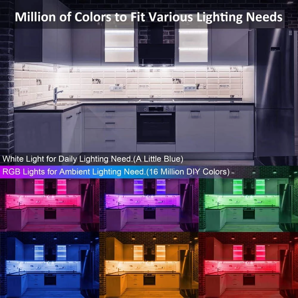 - Designed for a colorful life, this kit breaks away from traditional single – color cabinet lights. It offers 16 million DIY colors (including white) to meet diverse lighting needs, with white for daily use and other colors for ambient effects.