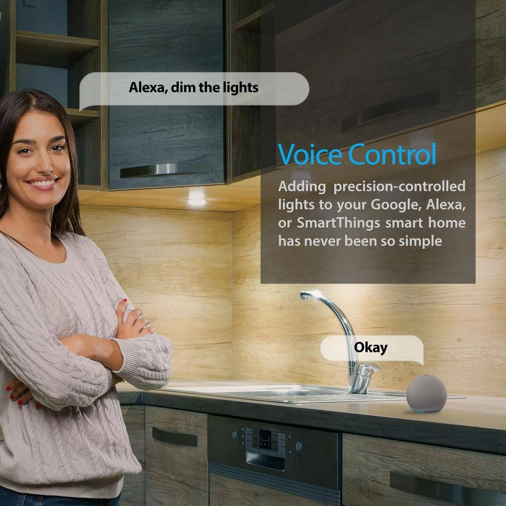 - Easy smart home integration: just download the app, connect to your 2.4 Ghz Wi-fi network, connect the smart switch, add your device and presto, you have got precise voice control of your cabinet lights, no hub required, now you can quickly set them to a specific brightness level or schedule them to turn on/off, brighten or dim at certain hours