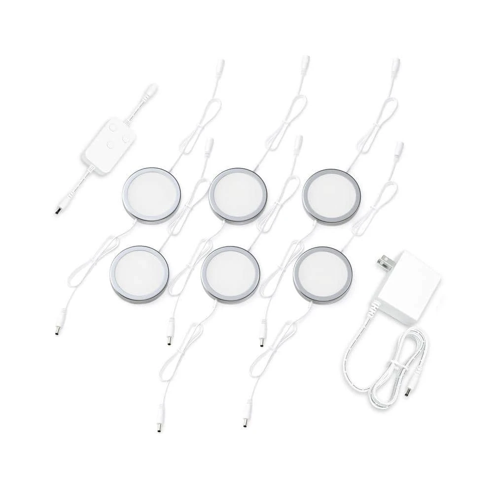 Enjoy Simplicity, Efficiency and Performance with this Alexa, Google and SmartThings Compatible Under-Cabinet Lighting from ESHINE. Six 2-Watt lights on a 2.36 in. puck offering 900 Lumens of brightness in an easy-to-install package, these under-cabinet lights can transform your living and working environment with warm light that helps you get it done. No Hub Necessary: Adding precision-controlled lights to your Alexa, Google or SmartThings smart home has never been so simple. Configure the app, connect to your wi-fi, (2.4 Ghz required) plug in your lights and you’re in business. Simple Light: If all you want is a warm light that lets you control the brightness, you’ve got 1 right here. Just plug the power supply into the switch, hit the power summary, select your desired brightness and you’re in business. Drop that Energy Bill: Running at 12-Watts but putting out 900 Lumens of brightness, these lights offer a supremely efficient alternative to your current lighting. Install these in the living and workspaces throughout your home, office or shop and you’ll be amazed by the savings. PACKAGE CONTENT:6 x LED puck lights 6 m x 3 m sticker for LED puck lights1 x Smart switch1-Watt x 12-Watt Power supply1 ft. x 3.3 ft. male-female extension cable24 x Wire Clips with 3 m stickers preinstalled12 x ScrewsEach LED puck has 9 LED’s and 150 Lumens brightness. Puck Size 2.36 in. (D) x 0.32 in. (H).