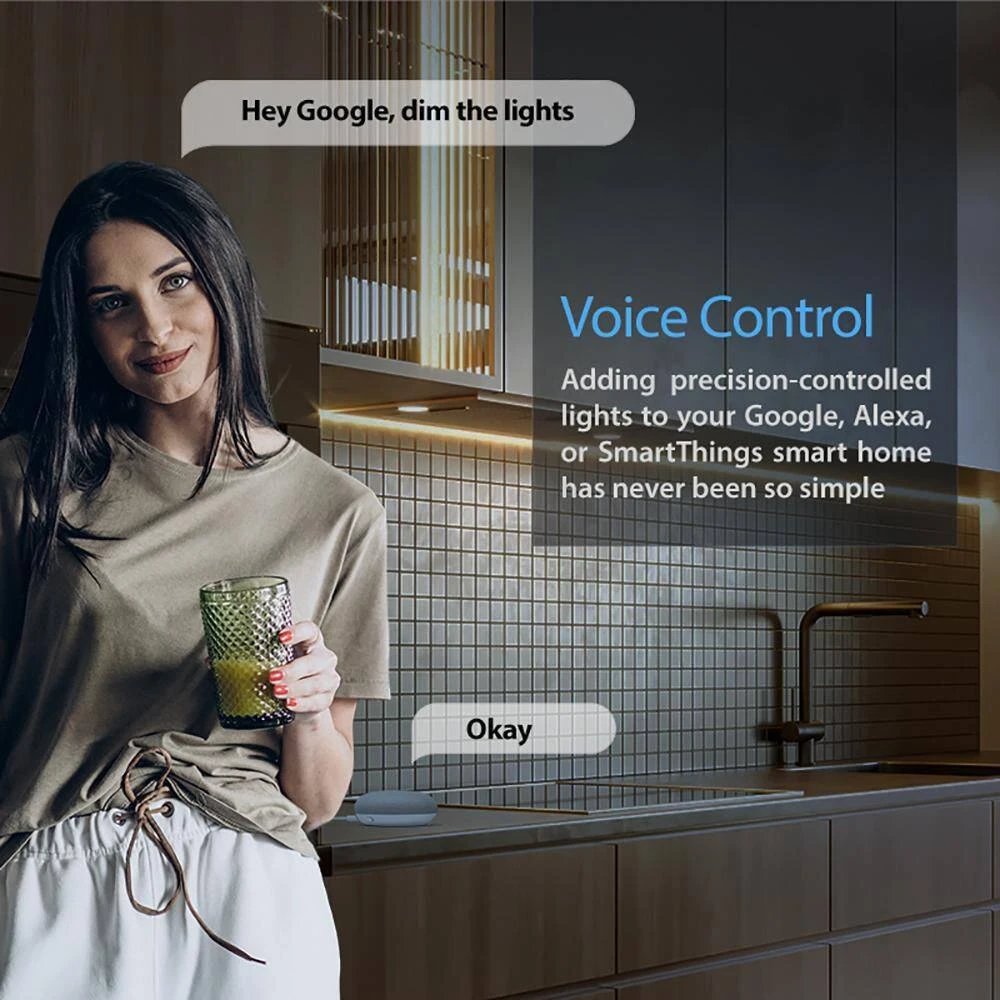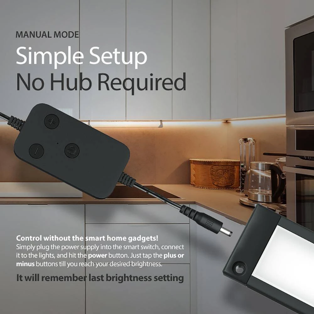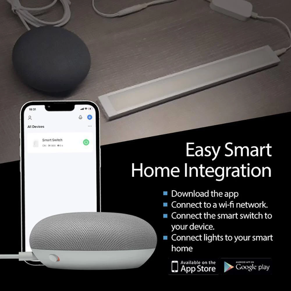 - EASY SMART HOME INTEGRATION: Just download the app, connect to your 2.4 ghz wi-fi network, connect the smart switch, add your device, and presto! You’ve got precise voice control of your cabinet lights; no hub required. Now you can quickly set them to a specific brightness level or schedule them to turn on/off, brighten, or dim at certain hours.