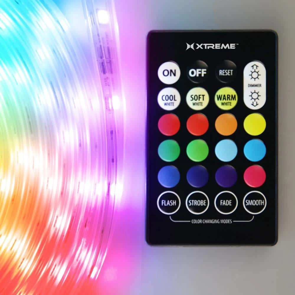 With the XTREME 16.4 ft. Indoor/Outdoor LED Strip, you can transform the way you light multiple spaces all around your house. Its extra-long length allows it to fit different spaces and areas whether inside or out. You’ll be able to use it in any environment, wet or dry as our strip is water-resistant. By using the included remote control, you can set up a variety of multi-color and multi-white color and flash modes with speed adjustments to further control your lights at your convenience. You can fully modify your lights to best reflect your space or your mood for the idea look and atmosphere to your setting, while the remote works up to 26 ft. away from your strip. An 8 ft. adapter cable easily reaches from a power outlet to your devices in any area. Installation’s a breeze with the included mounting clips and screws for easy assembly anywhere. Add more color and light to any location with the 16.4 ft. Indoor/Outdoor LED Strip.